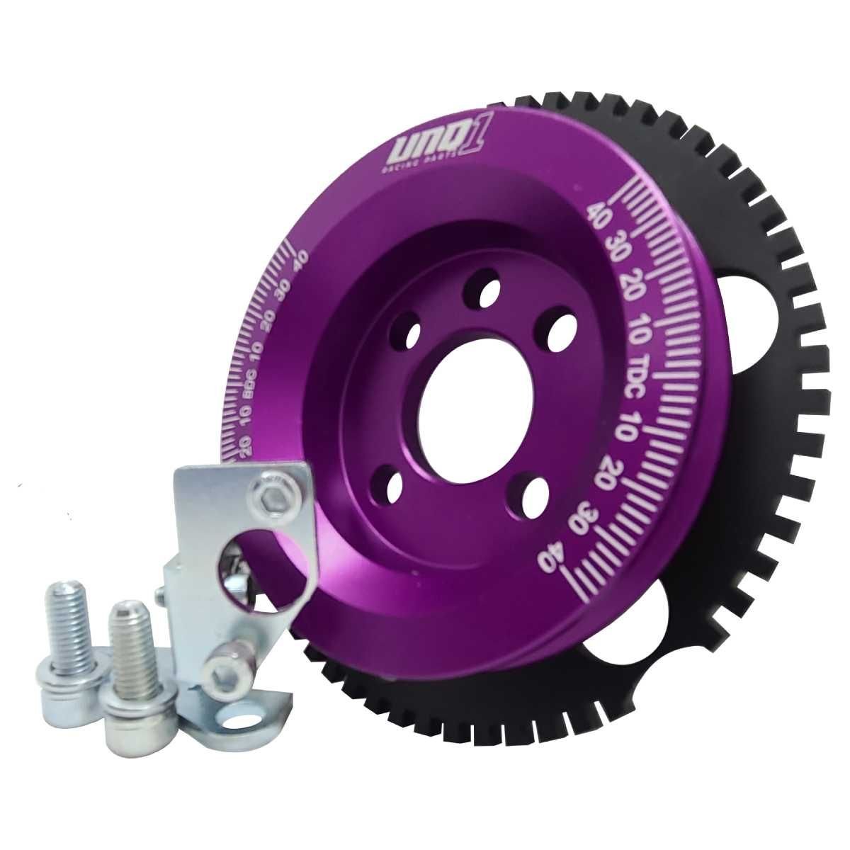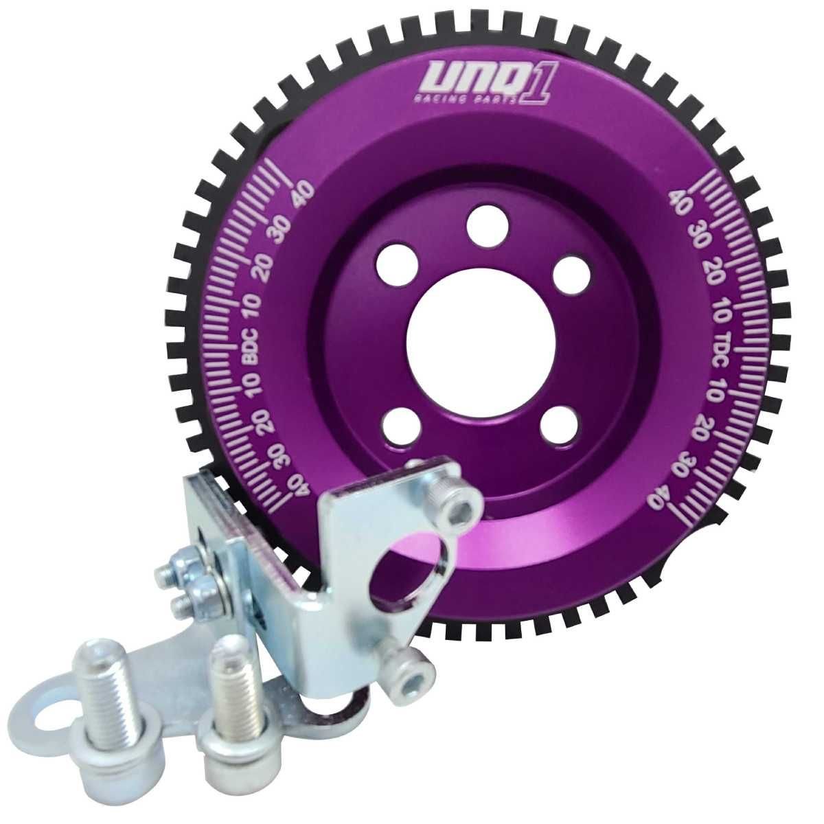 A RODA FONICA UNIQUE1 CONSISTE DE UMA POLIA DE ALUMÍNIO 6061 T6, UMA ENGRENAGEM DE AÇO 1020 E O SUPORTE DO SENSOR. O SENSOR É UM DISPOSITIVO ELETRÔNICO QUE MONITORA A POSIÇÃO OU VELOCIDADE DE ROTAÇÃO DO VIRABREQUIM. ESSAS INFORMAÇÕES SÃO USADAS PELOS SISTEMAS DE GERENCIAMENTO DO MOTOR PARA CONTROLAR A INJEÇÃO DE COMBUSTÍVEL, TEMPO DO SISTEMA DE IGNIÇÃO OU OUTROS PARAMETROS.