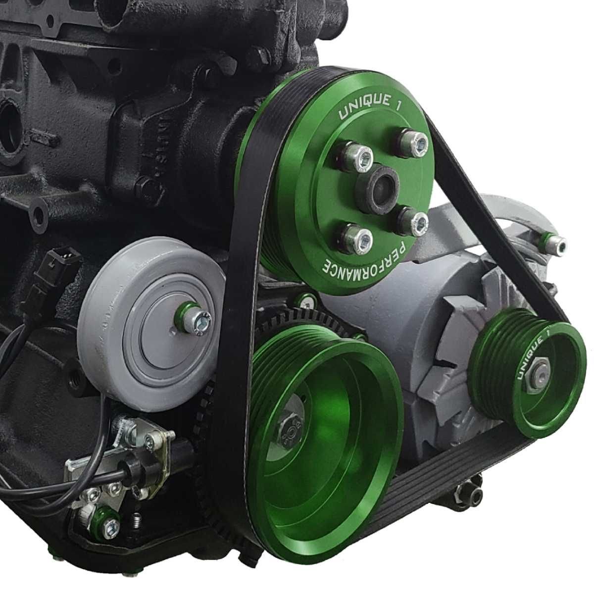 - UMA POLIA DO ALTERNADOR FABRICADA EM ALUMÍNIO BILLET COM ACABAMENTO ANODZADO