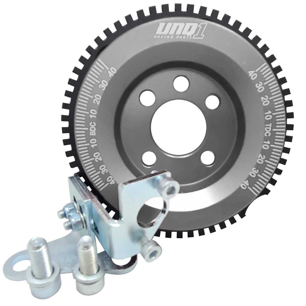 A RODA FONICA UNIQUE1 CONSISTE DE UMA POLIA DE ALUMÍNIO 6061 T6, UMA ENGRENAGEM DE AÇO 1020 E O SUPORTE DO SENSOR. O SENSOR É UM DISPOSITIVO ELETRÔNICO QUE MONITORA A POSIÇÃO OU VELOCIDADE DE ROTAÇÃO DO VIRABREQUIM. ESSAS INFORMAÇÕES SÃO USADAS PELOS SISTEMAS DE GERENCIAMENTO DO MOTOR PARA CONTROLAR A INJEÇÃO DE COMBUSTÍVEL, TEMPO DO SISTEMA DE IGNIÇÃO OU OUTROS PARAMETROS.