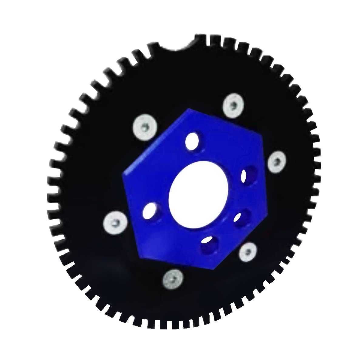 POLIA DA RODA FONICA FABRICADA EM ALUMÍNIO 6061 T6 COM 100MM DE DIÂMETRO, ACABAMENTO ANODZADO, GRADUAÇÃO E ACOPLAMENTO NA ENGRENAGEM SEXTAVADO; ENGRENAGEM FABRICADA EM AÇO 1021 DISPONDO DE 60-2 DENTES DORTADOS A LASER E SUPORTE DO SENSOR DE ROTAÇÃO EM AÇO.